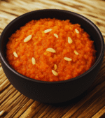 - Grated carrots slow-cooked with milk, ghee, and sugar.